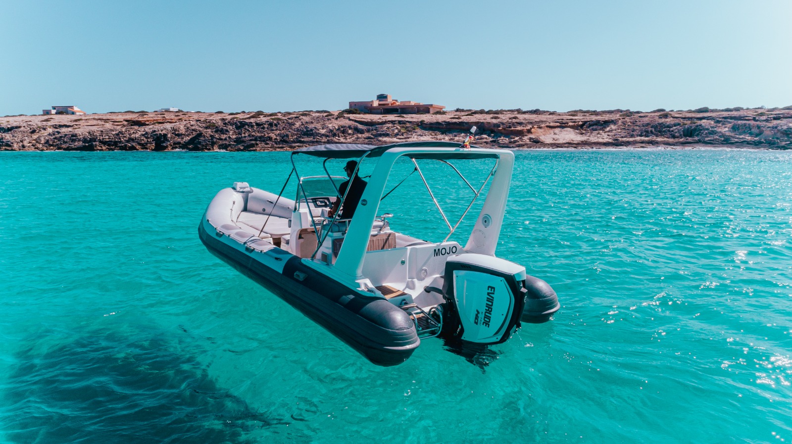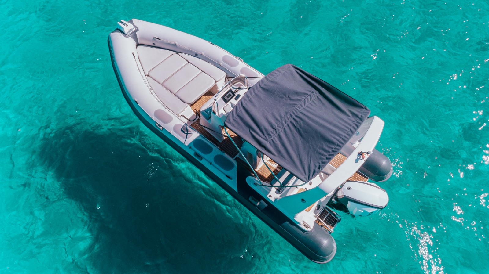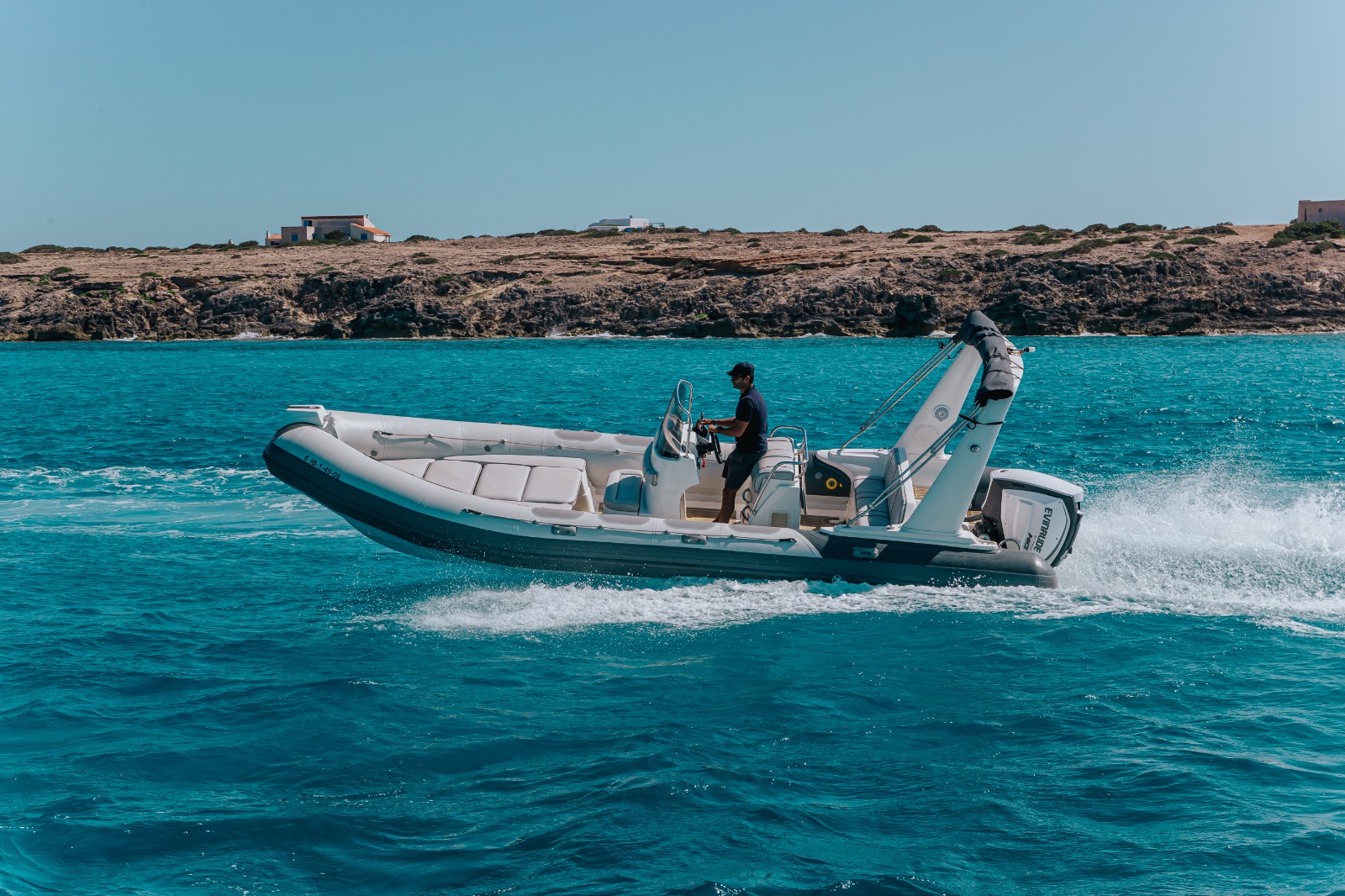 En esta embarcación semi-rígida neumática encontrarás un equipamiento sencillo pero básico y completo: toldo, escalera de baño, ducha de agua dulce, cofres, espacio para tomar el sol tumbado en la parte de proa, y equipo de música, y de todas nuestras opciones es la que menos combustible consume. Lo mejor de todo es que dado su poco calado el patrón podrá acercarse más y tendréis que nadar menos hasta la orilla.
